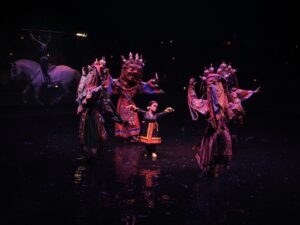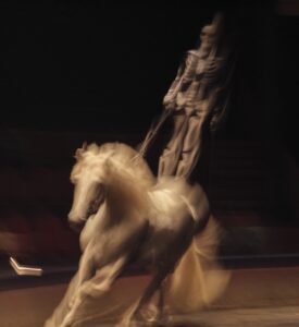 Figures in Extinction se concentre sur les peurs et les espoirs, Crystal Pite et Simon McBurney brassent leurs idées avant de mettre en forme. La traduction donnée par le Nederlands Dans Theater est éblouissante de maîtrise et de subtilité, de beauté. On pénètre dans des cycles de vie et de destruction proches du rêve et du cauchemar. La première pièce, Figures in Extinction1.0 explore le monde animal, oiseaux, caribou, dinosaure et autres espèces et fait vivre des espèces disparues. Elle montre, dans un côté marionnettique, un danseur dont le prolongement des bras est une longue corne – c’est impressionnant.