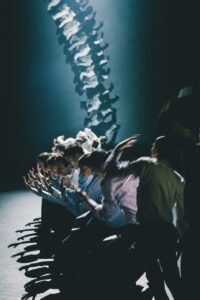 Figures in Extinction compose un travail théâtral et chorégraphique de tout premier ordre, réinventant l’espace en des volumes des plus fascinants par le jeu sublime de rideaux, lumières et découpes qui servent le spectacle et créent un langage. La subtilité du son, les mouvements de groupe quand vingt-cinq danseurs développent le même mouvement ou le réalisent dans un style décalé ou en miroir relève, outre la perfection du geste accompli, d’un rapport à l’espace des plus subtils. Chapeau bas !