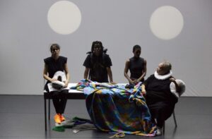 Mise en scène, chorégraphie et textes Betty Tchomanga – Collaboration artistique et interprétation Emma Tricard, Folly Romain Azaman, Dalila Khatir et Adélaïde Desseauve aka Mulunesh – au Théâtre de la Bastille.